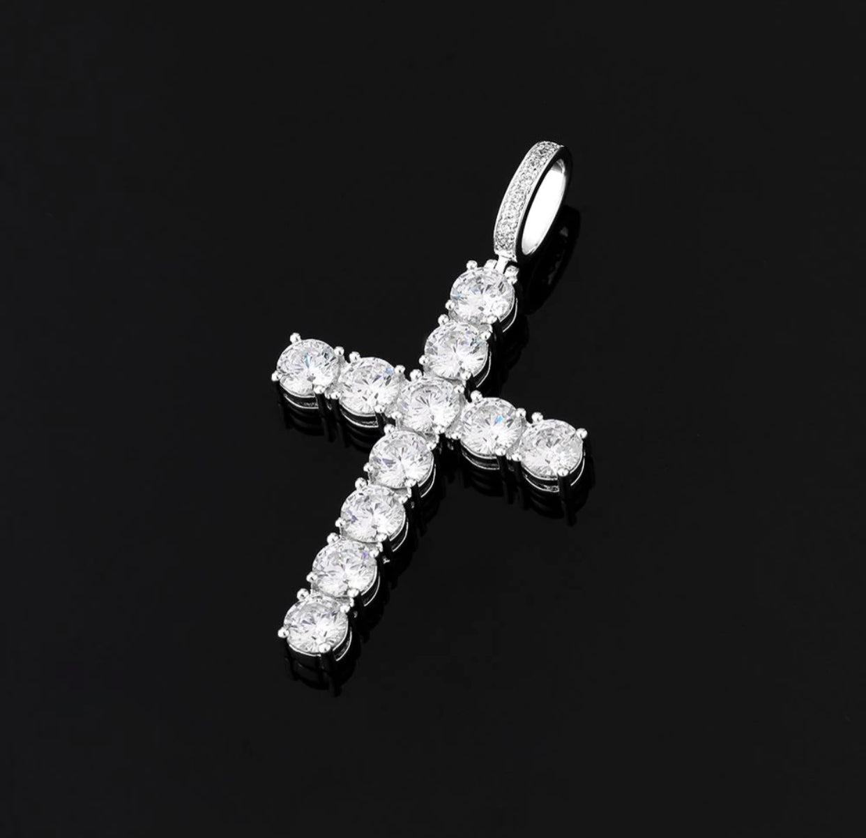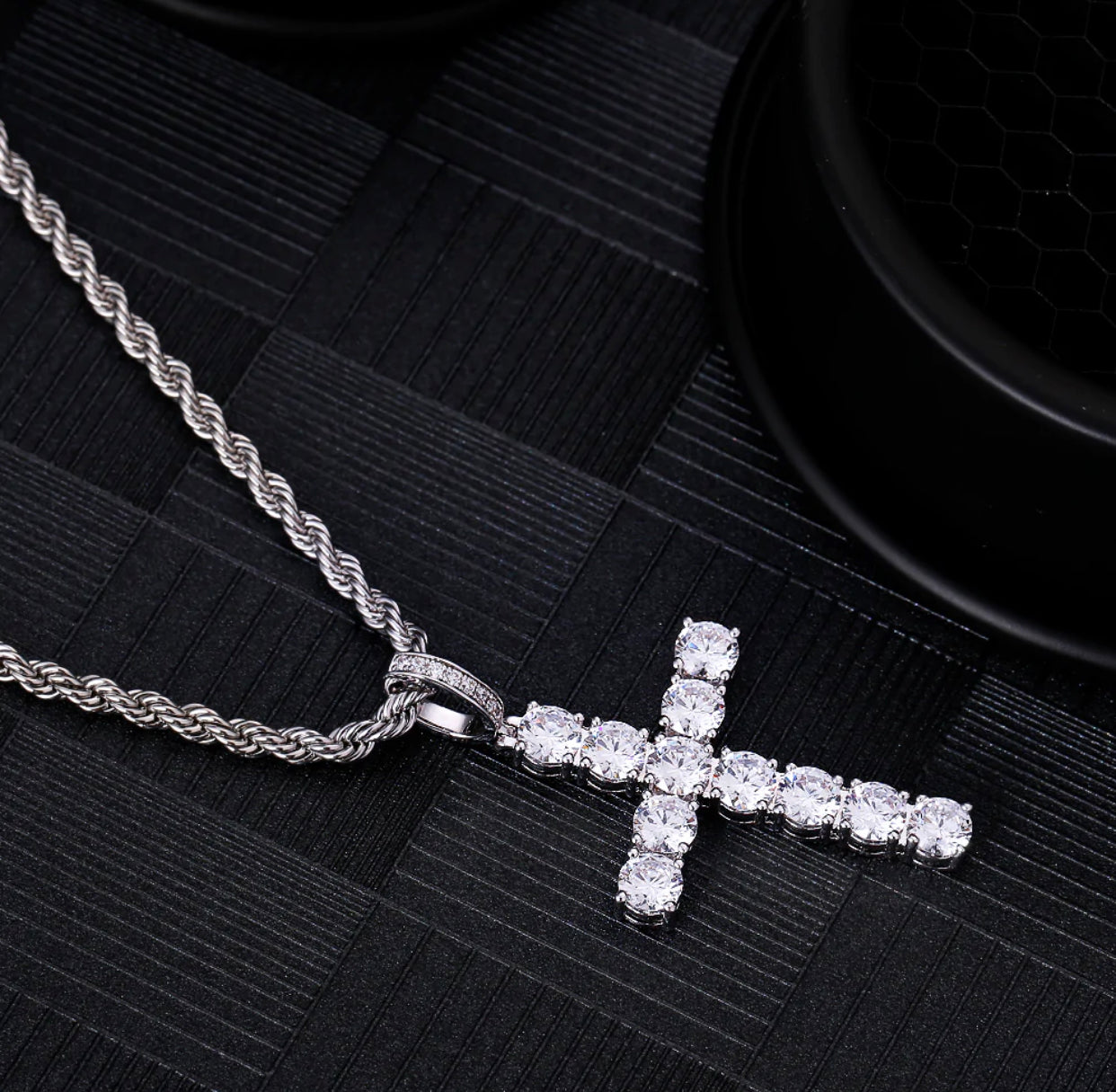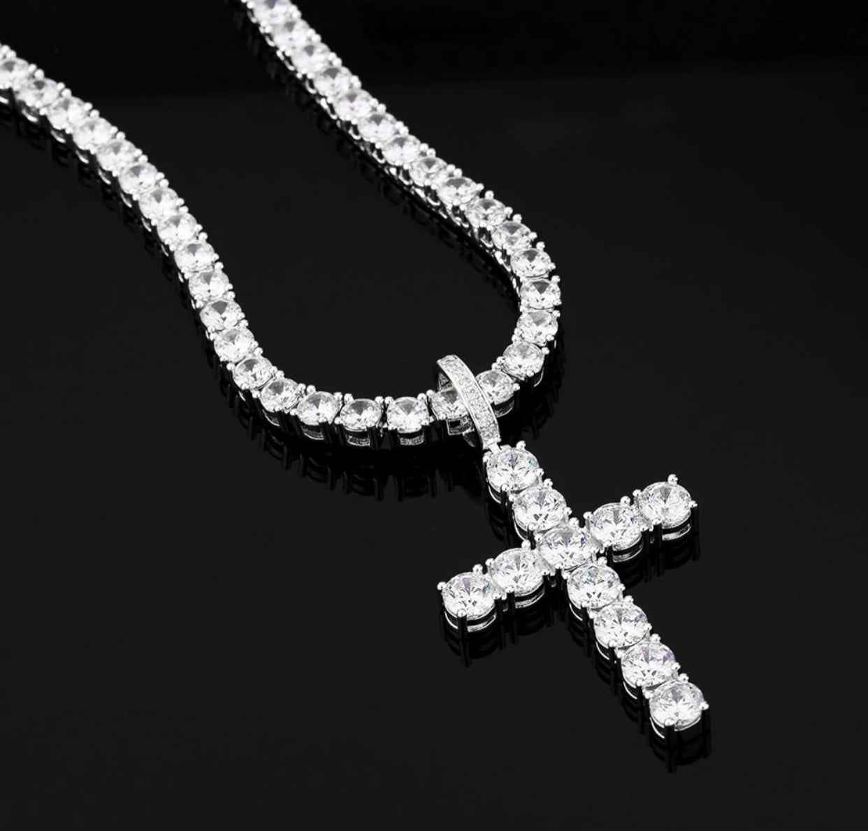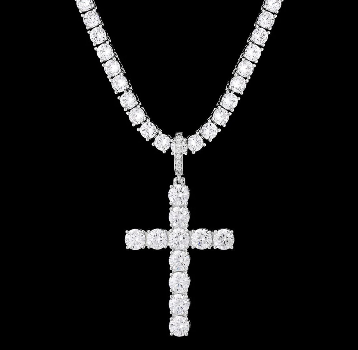 White Gold 4mm Tennis Chain With Iced Out Cross Pendant